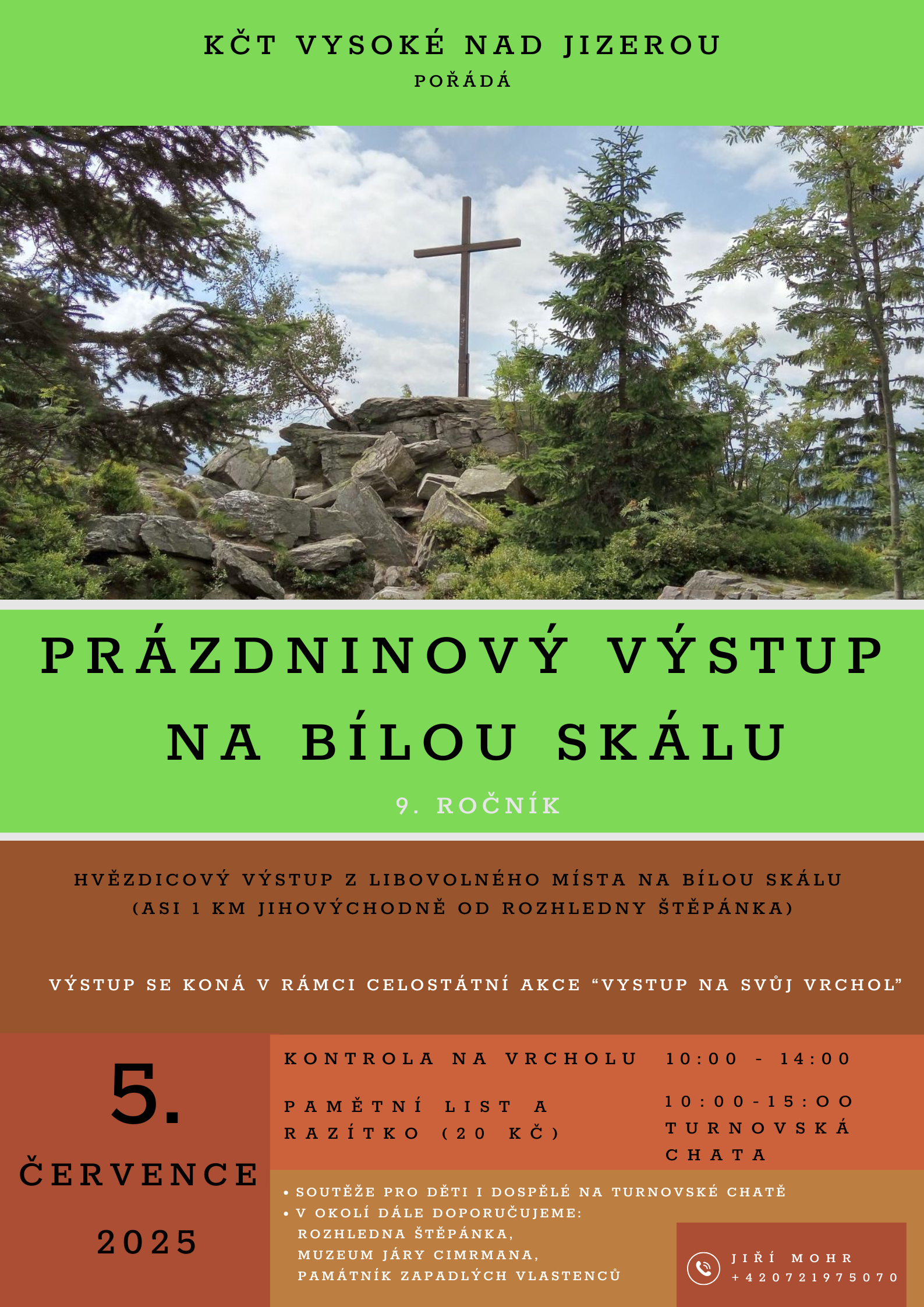 Klub českých turistů Vysoké nad Jizerou pořádá 9. ročník turitické akce „Prázdninový výstup na Bílou skálu“. Akce se koná 5....