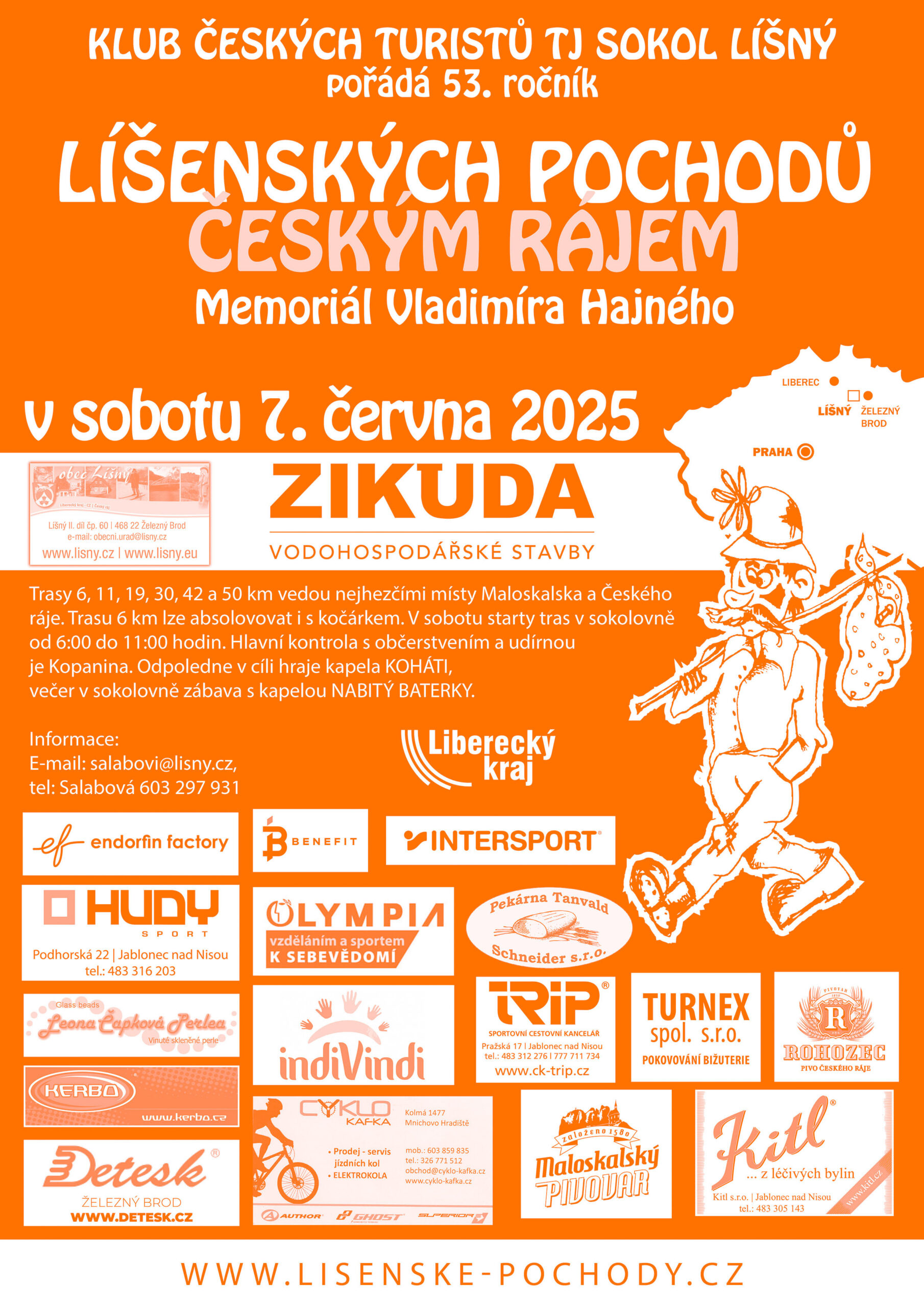 Klub českých turistů TJ Sokol Líšný pořádá 53. ročník akce s názvem „Líšenské pochody Českým rájem“. Akce se koná 7....
